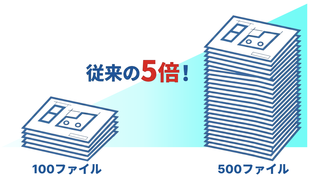 1案件あたりの登録ファイル数を最大500へ拡大(従来の5倍)